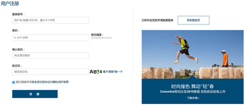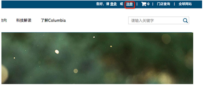 第一步:打开哥伦比亚官网,点击“注册”