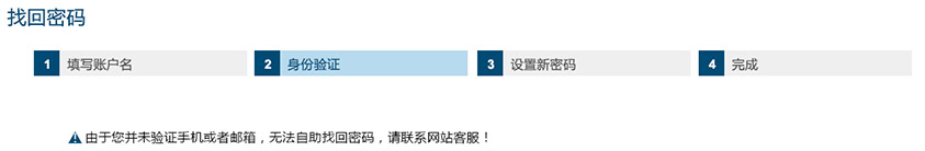 注:如果您操作找回密码时无法通过身份验证,可联系在线客服由客服帮助处理。